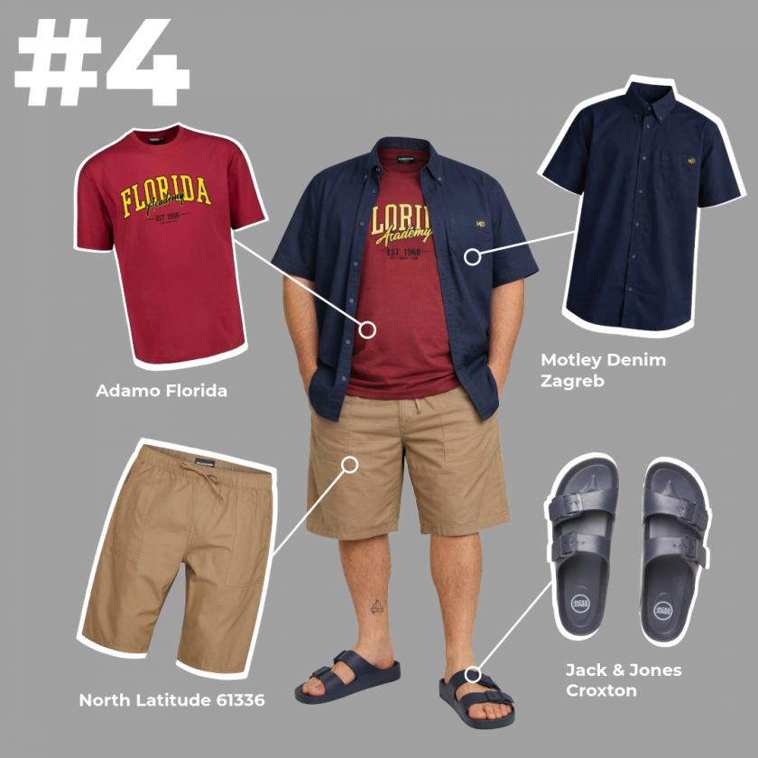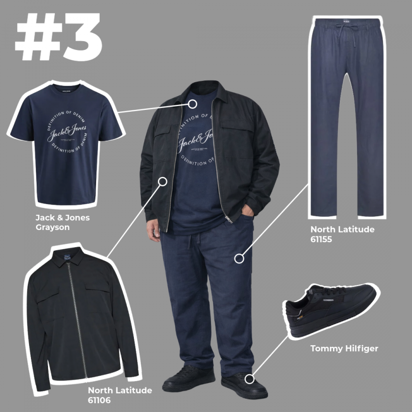 Tänu kergetele kihtidele on seda outfit'i päeva jooksul lihtne kohendada. T-särk hoiab üldmulje lihtsa, lühikeste varrukatega särk lisab veidi soojust ning lühikesed teksapüksid ja tossud tagavad igapäevase mugavuse.