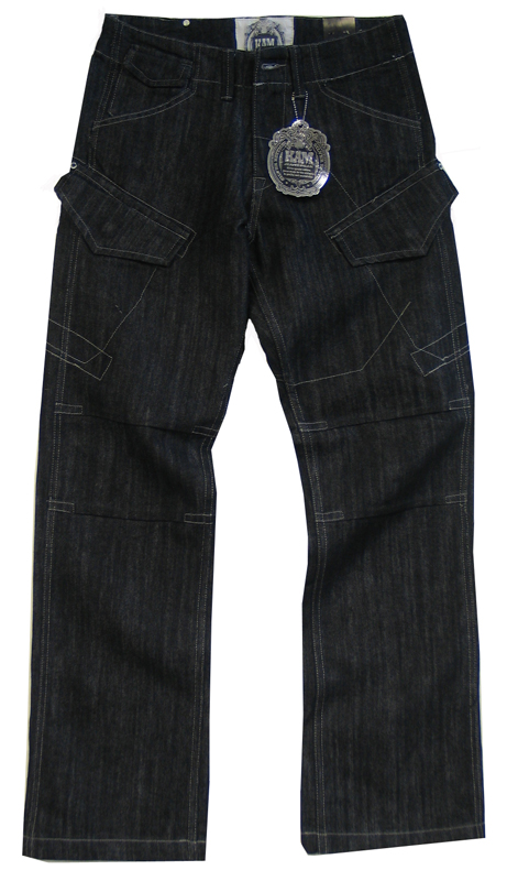Kam Jeans 244 Raw Denim Cargo PKT Jog Pants Black