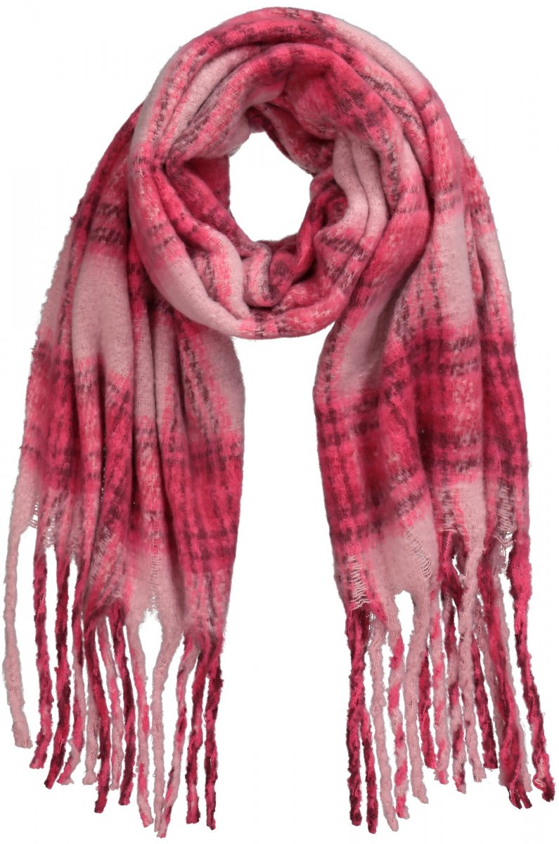 Ulla Popken Plaid Long Fringe Scarf Aubergine