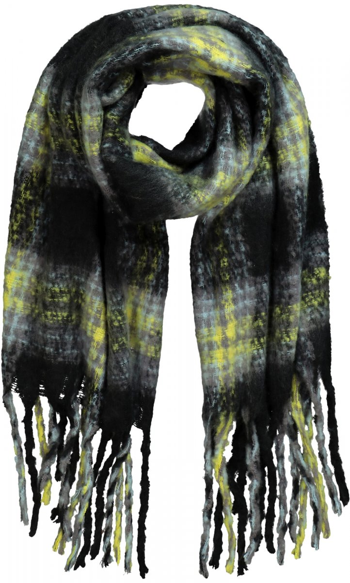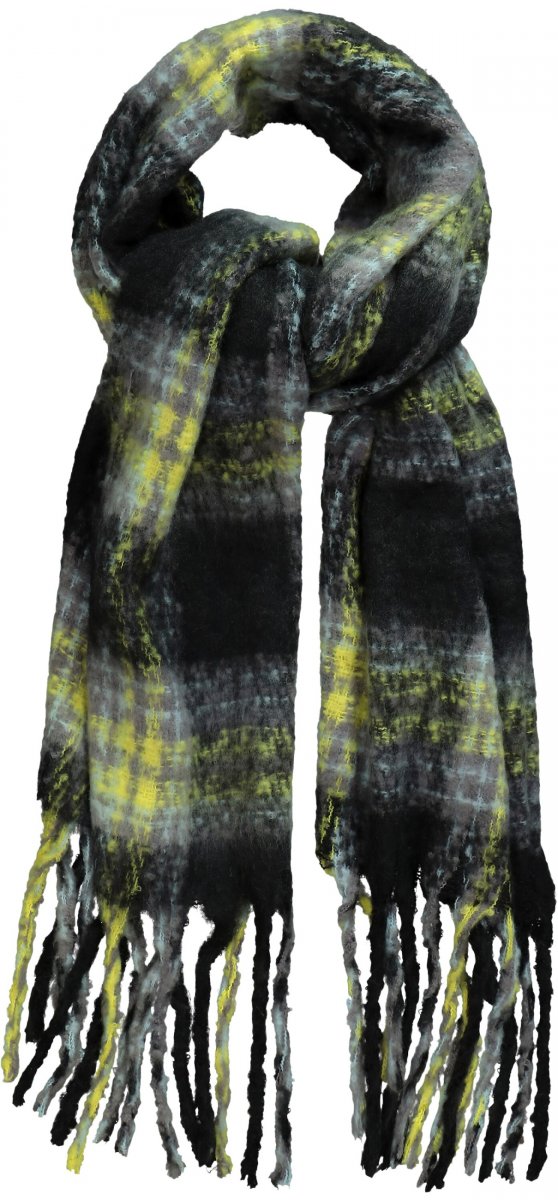 Ulla Popken Plaid Long Fringe Scarf Yellow Green