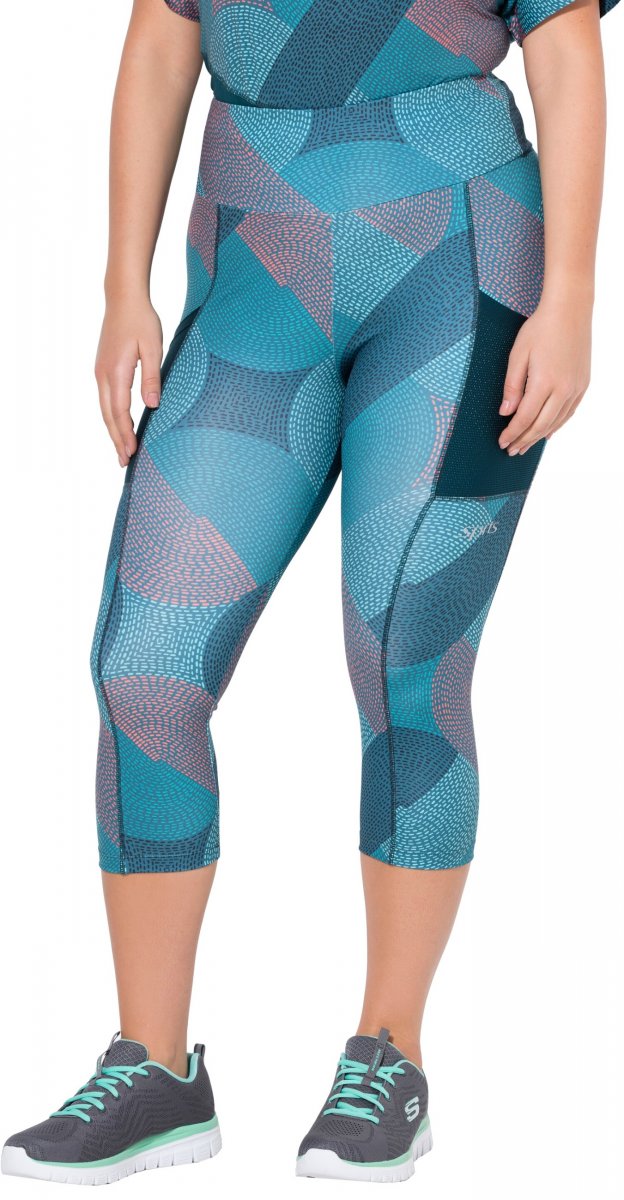 Ulla Popken Quick Dry Cropped Geometric Print Leggings Blue