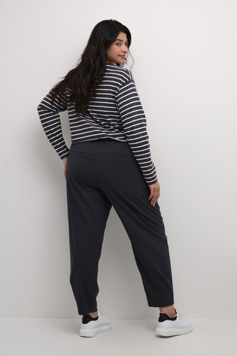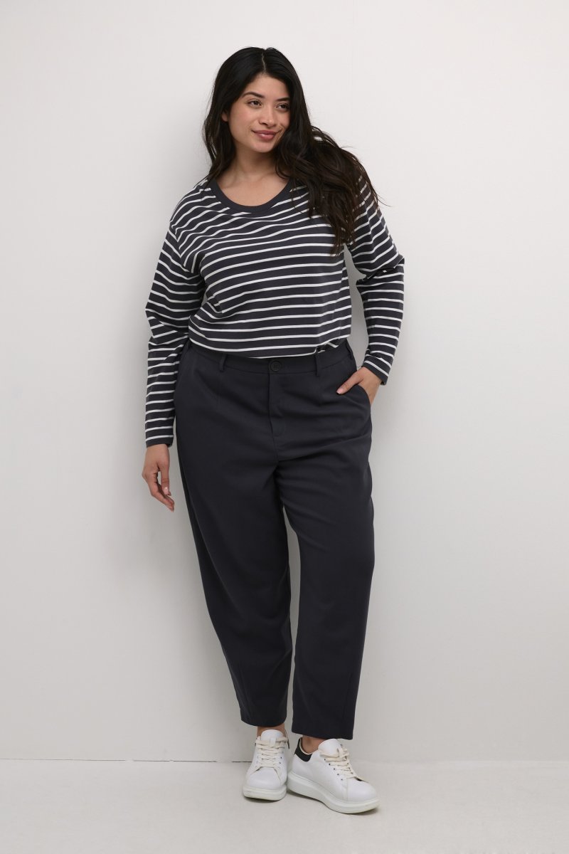 PüksidSaadaval suurustes 42–56Brändilt Kaffe CurveValmistatud 64% polüestrist (taaskasutatud), 33% viskoosist, 3% elastaanistAvar lõigeToode on hallNäita suuruse juhendit