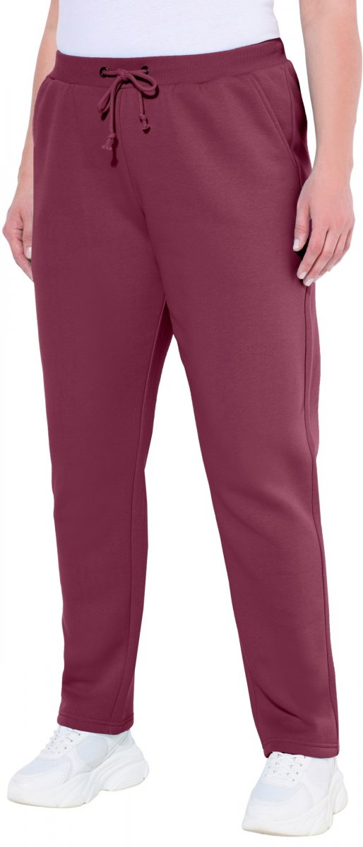 Ulla Popken Basic Drawstring Elastic Waist Cotton Blend Joggers Dark Berry