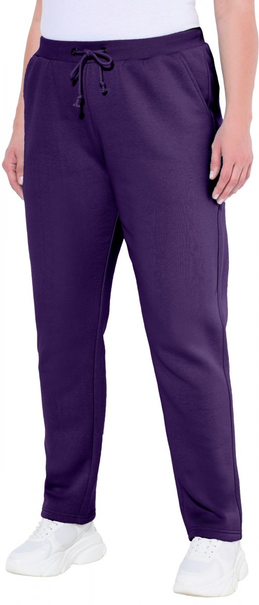 Ulla Popken Basic Drawstring Elastic Waist Cotton Blend Joggers Deep Violet