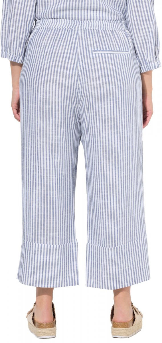 Ulla Popken Coastal Stripe Linen Blend Elastic Waist Culottes Blue