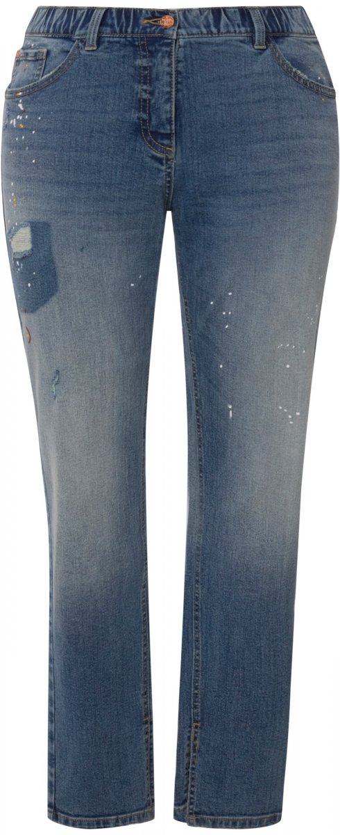 Ulla Popken Distressed Stretch Fit Boyfriend Jeans Blue Denim
