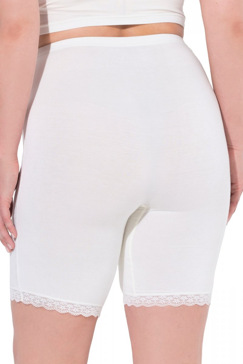 Ulla Popken Lace Hem Stretch Viscose Knit Bicycle Length Lounge Shorts White