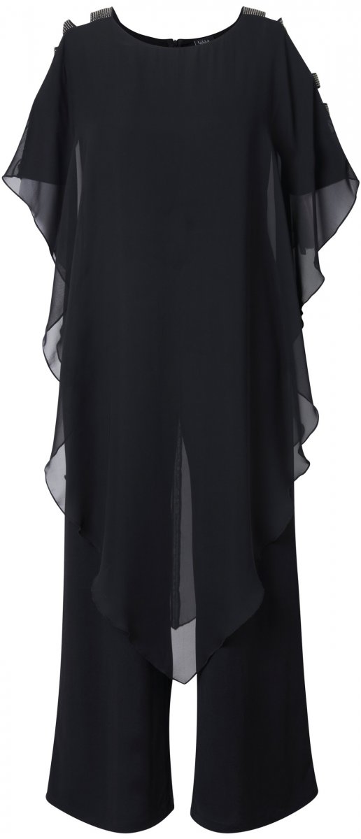 Ulla Popken Layered Chiffon Wrap Jumpsuit Grey