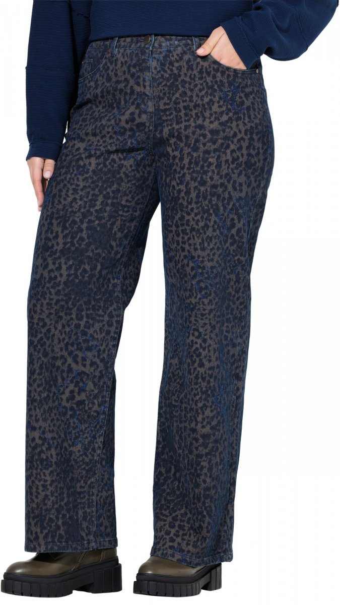 Ulla Popken Leopard Print Stretch Fit Jeans Ink Blue