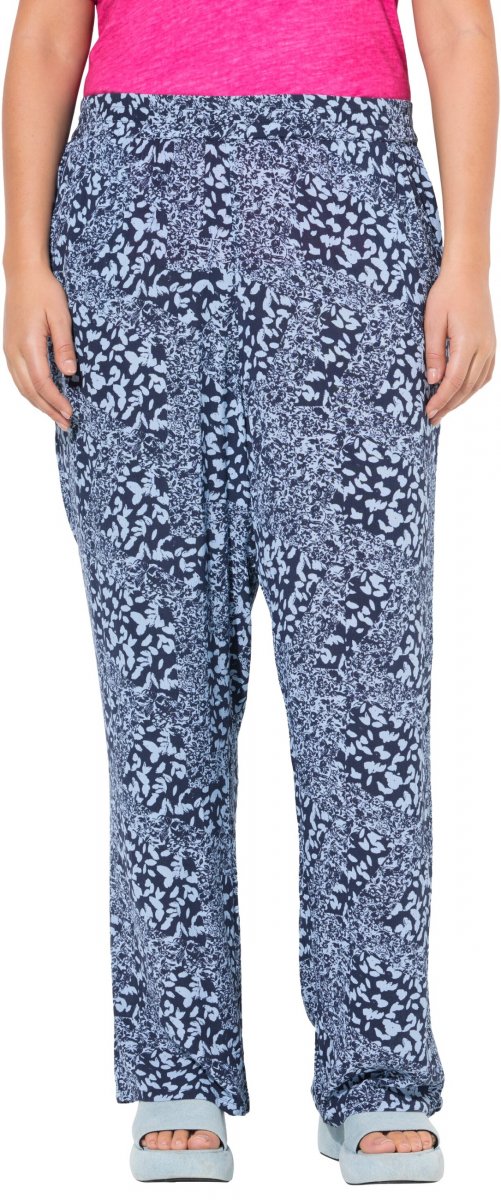 Ulla Popken Patch Print Elastic Waist Pants Navy