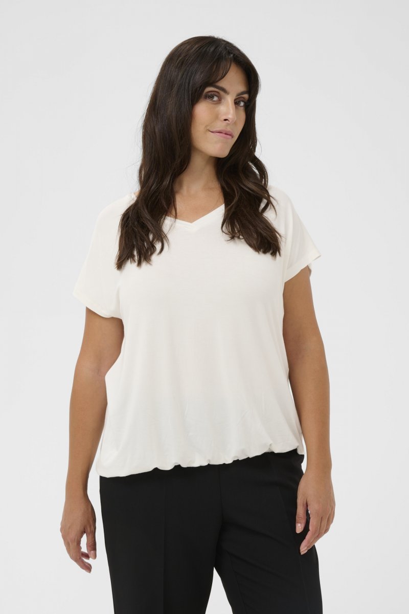 T-särkSaadaval suurustes S–XLBrändilt Kaffe CurveValmistatud 95% viskoosist ja 5% elastaanistAvar lõigeVärvus on valgeNäita suuruse juhendit