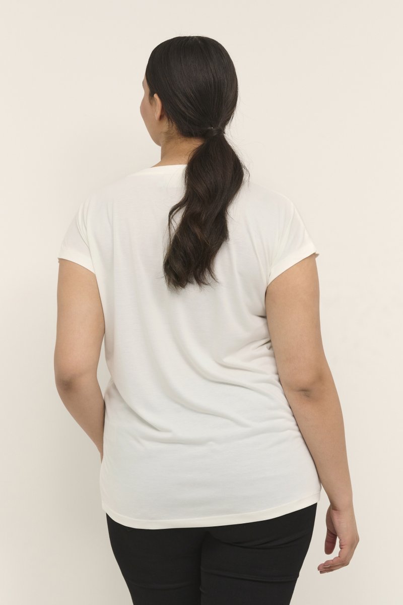 T-särkSaadaval suurustes S–XLBrändilt Kaffe CurveMaterjal: 70 % modal, 30 % polüesterAvar lõigeVärvus on valgeNäita suuruse juhendit