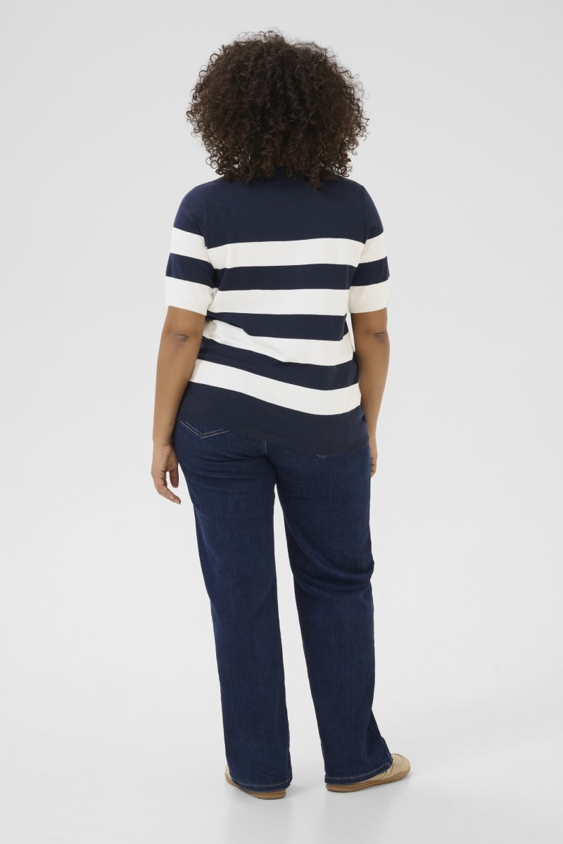 T-särkSaadaval suurustes S–XLBrändilt Kaffe CurveValmistatud 80% viskoosist ja 20% nailonistTavalise lõikegaVärvid on tumesinine ja valgeNäita suuruse juhendit