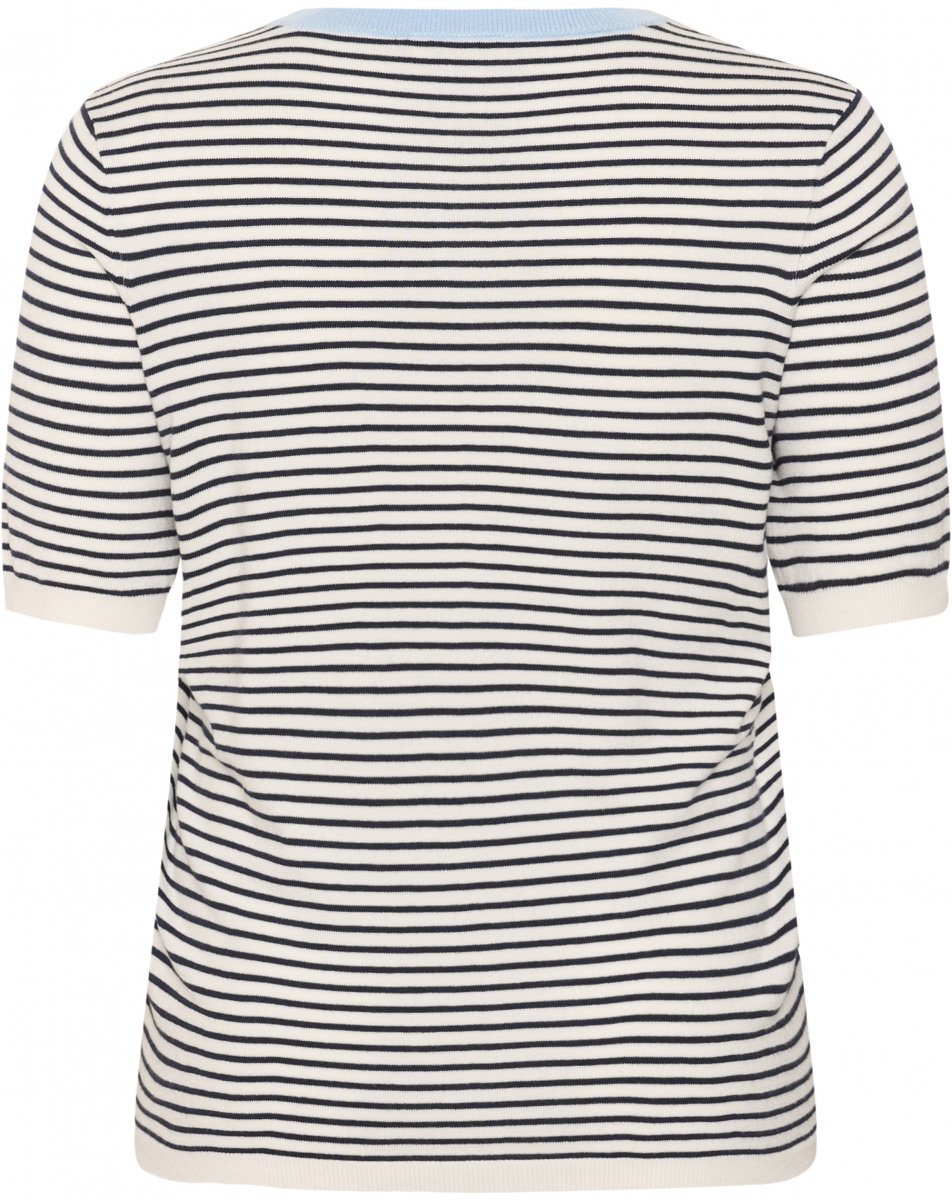 T-särkSaadaval suurustes S–XLBrändilt Kaffe CurveValmistatud 80% viskoosist ja 20% nailonistTavalise lõikegaVärvid on tumesinine ja valgeNäita suuruse juhendit