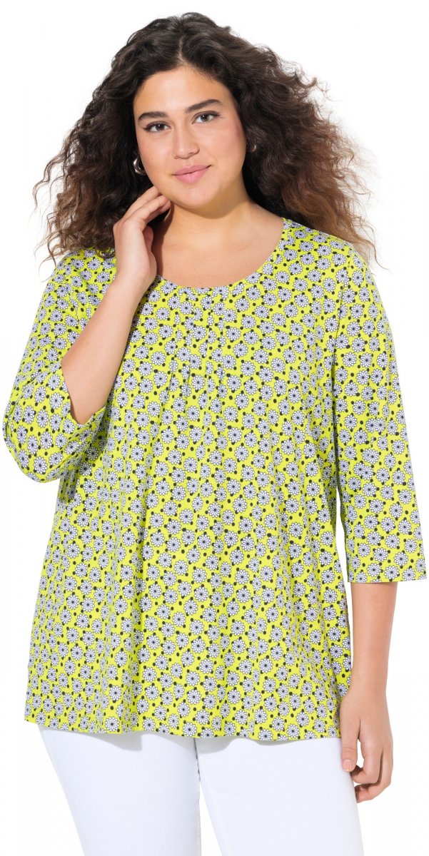 Suuruse juhend - Ulla Popken Flower Print 3/4 Sleeve A-Line Tee Lime