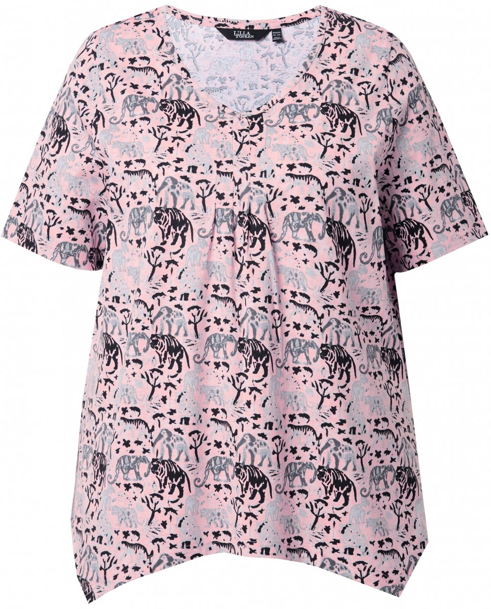 Suuruse juhend - Ulla Popken Half-sleeve A-line V-neck Pointed Hem Animal Pattern T-shirt Pastel Rose