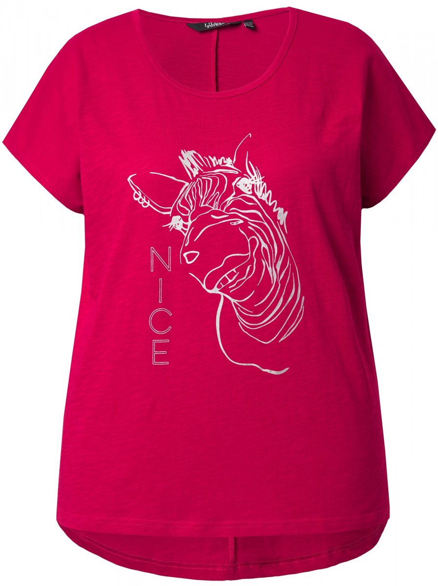 Ulla Popken Metallic Animal Cap Sleeve Graphic Tee Dark Raspberry