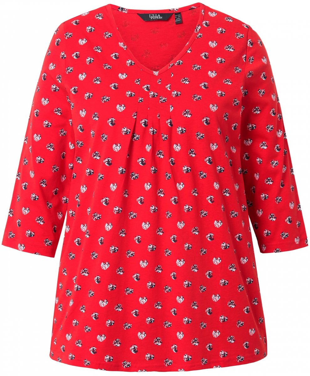 Ulla Popken Minimal Floral Print 3/4 Sleeve Tee Neon Red