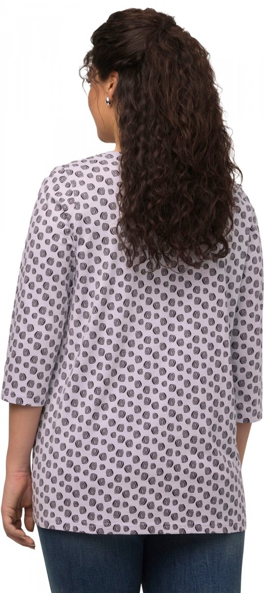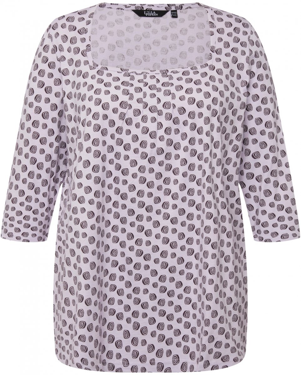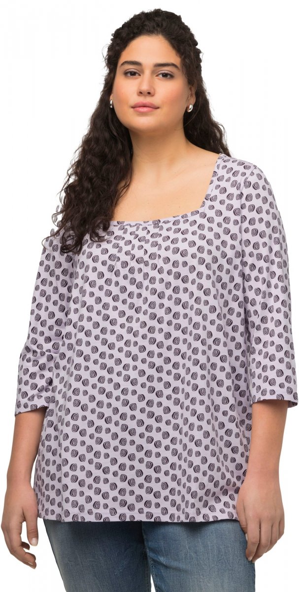 Ulla Popken Polka Dot 3/4 Sleeve Square Neck A-Line Tee Light Blue-Grey