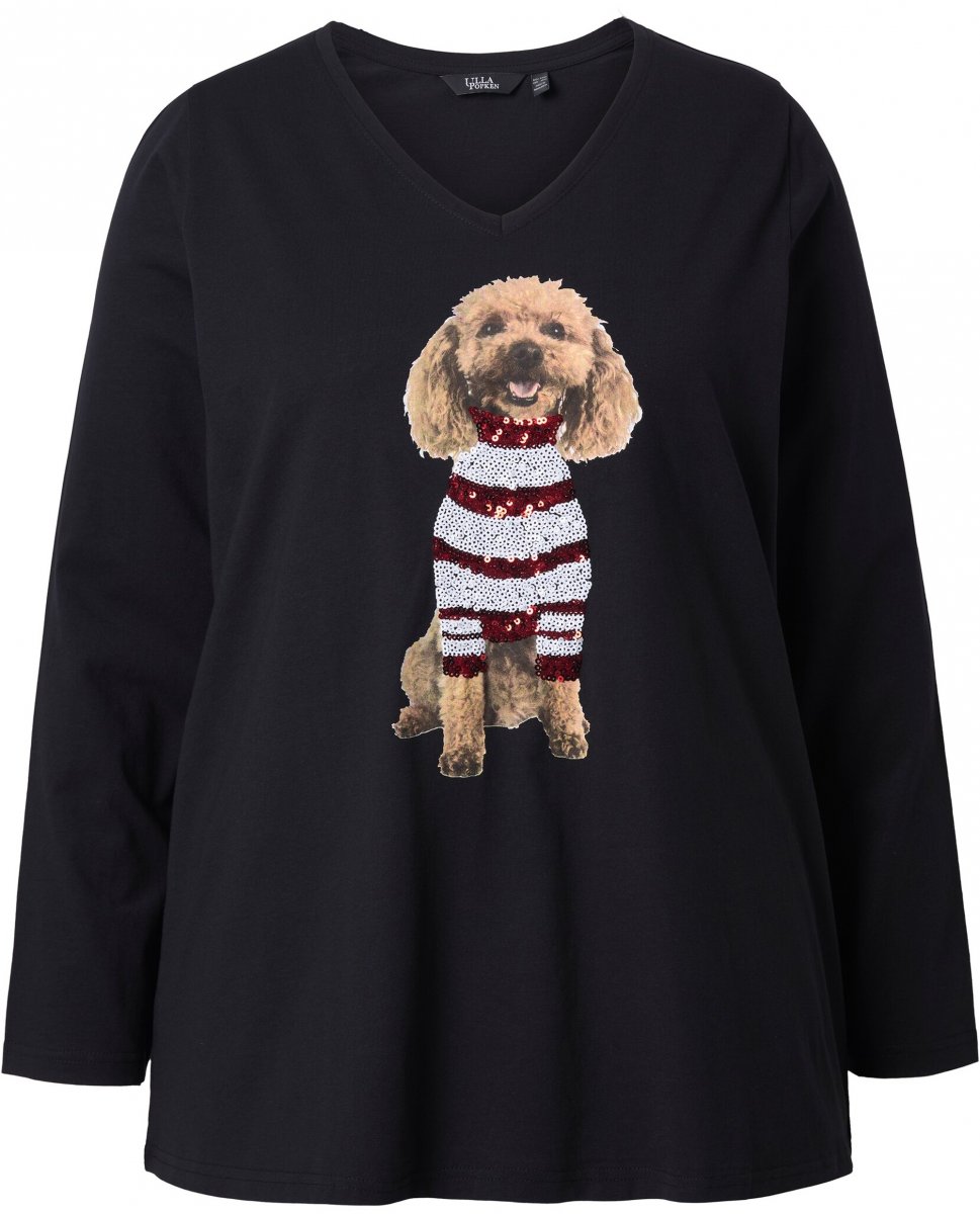 Ulla Popken Sequined Puppy Long Sleeve Graphic Tee Black