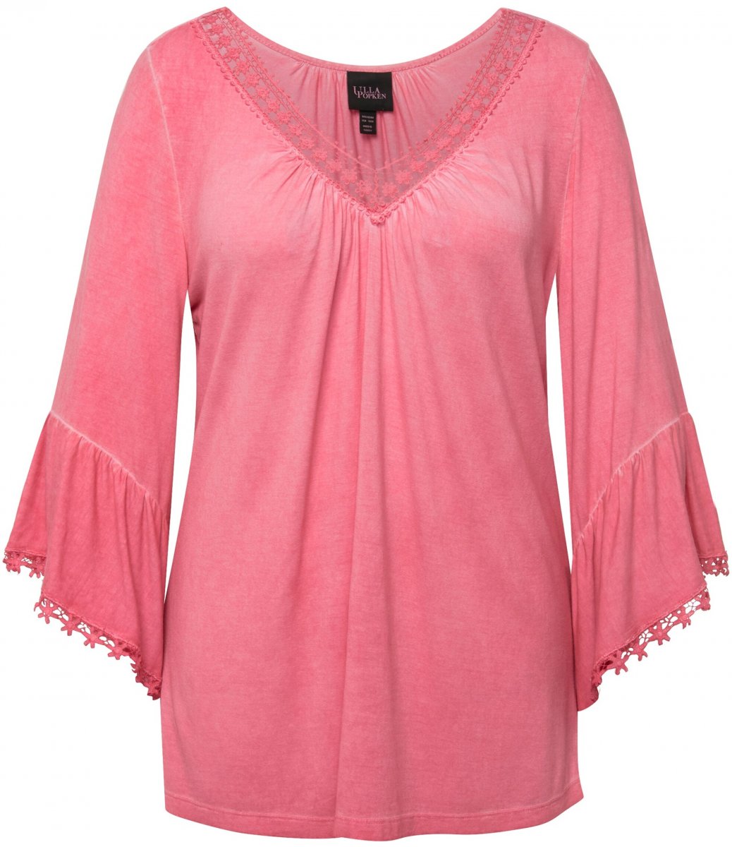 Ulla Popken Trumpet Sleeve Cold Dyed Tee Dark Pink