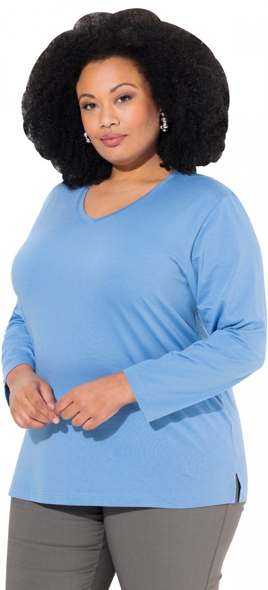 Ulla Popken Back To Basics V-Neck Relaxed Fit Cotton Tee Light Cornflower