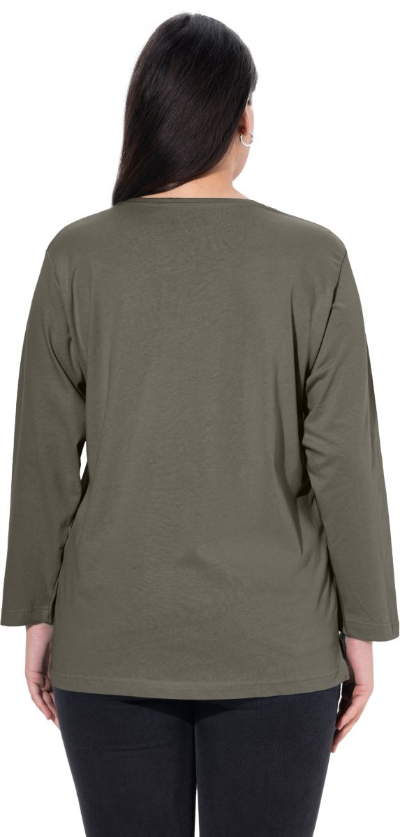 Ulla Popken Back To Basics V-Neck Relaxed Fit Cotton Tee Olive