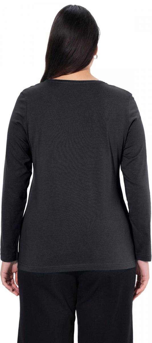 Ulla Popken Basic Round Neck Long Sleeve Slim Fit Cotton Tee Black