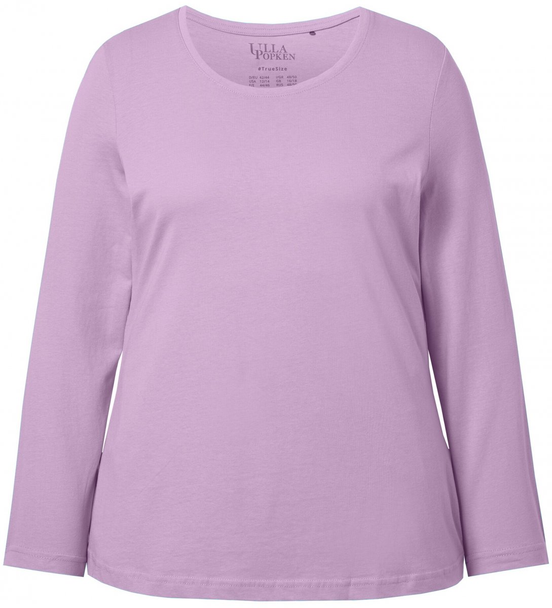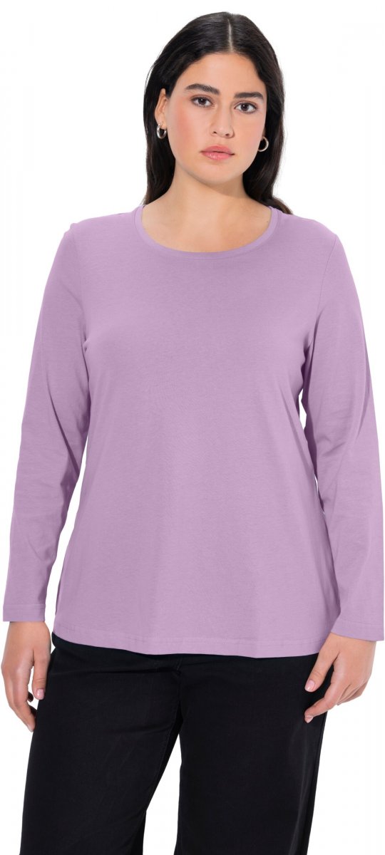 Ulla Popken Basic Round Neck Long Sleeve Slim Fit Cotton Tee Lavender