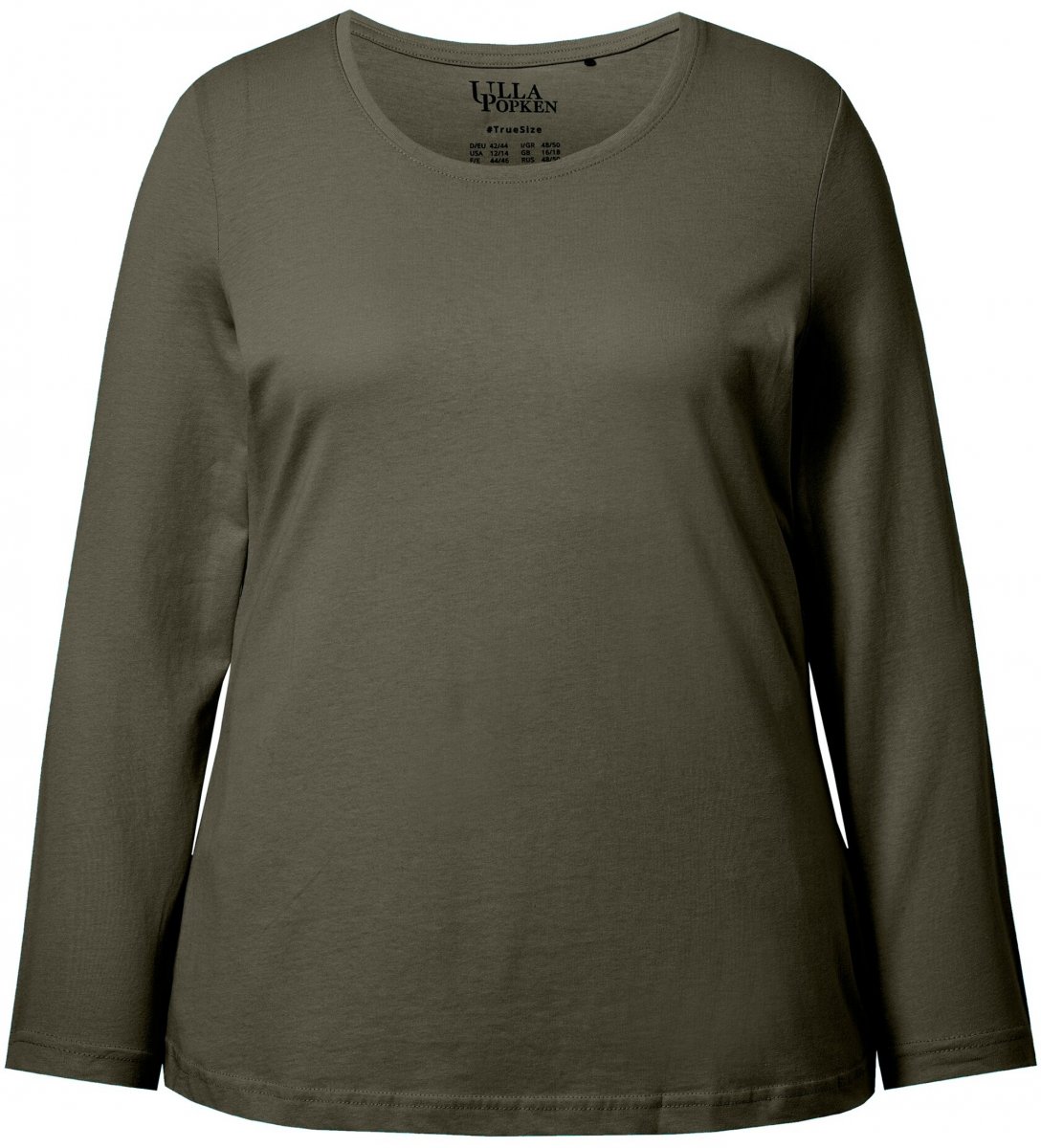 Ulla Popken Basic Round Neck Long Sleeve Slim Fit Cotton Tee Olive