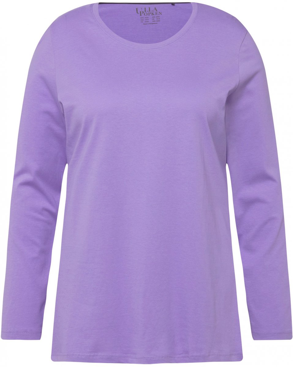 Ulla Popken Basic Round Neck Long Sleeve Slim Fit Cotton Tee Pale Lilac