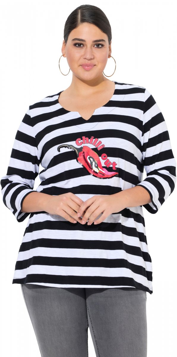 Suuruse juhend - Ulla Popken Chilli Pepper Sequined 3/4 Sleeve Graphic Tee Black