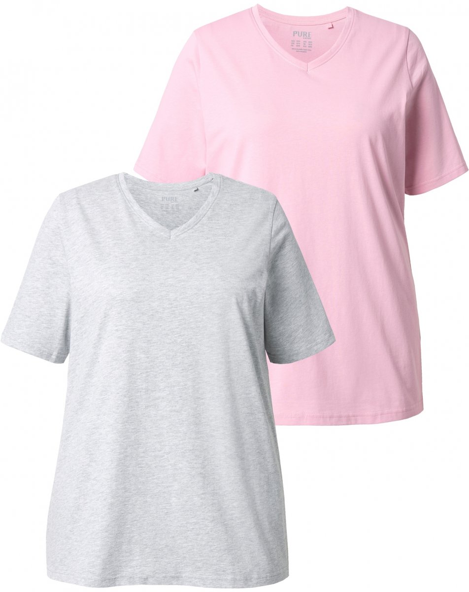 Ulla Popken Eco Cotton Basic T-Shirt 2-Pack Grey/Pink