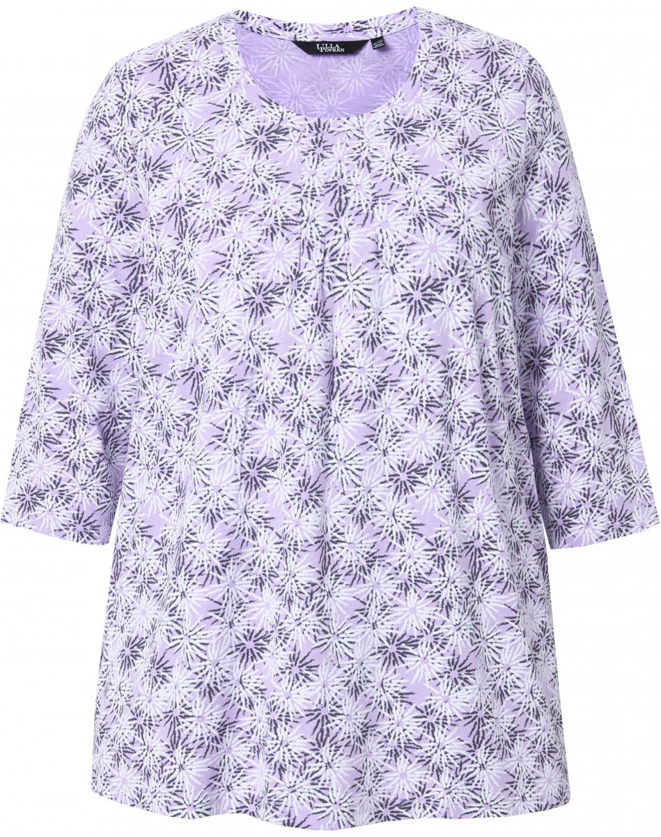 Ulla Popken Graphic Flower A-Line 3/4 Sleeve Tee Lavender