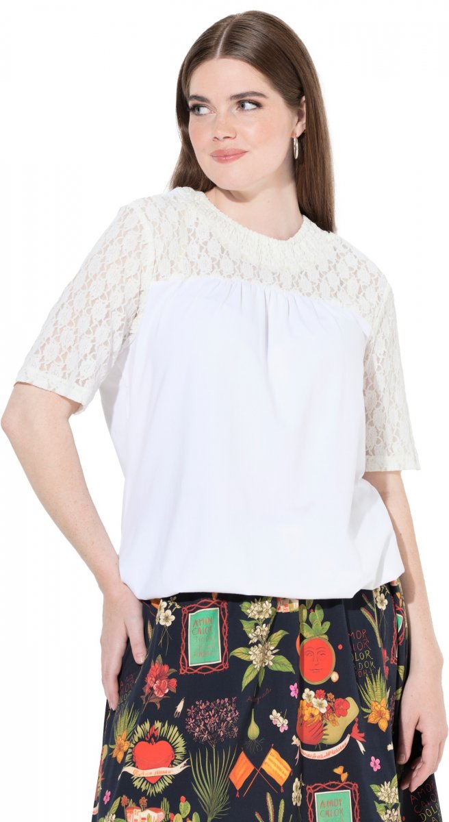 Suuruse juhend - Ulla Popken Lace Yoke Short Sleeve T-Shirt Snow White