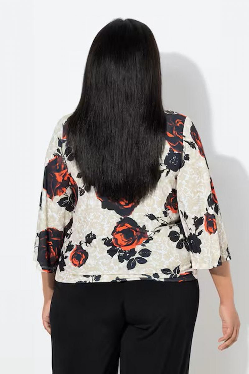 Suuruse juhend - Ulla Popken Rose Print Faux Wrap Top Off-White