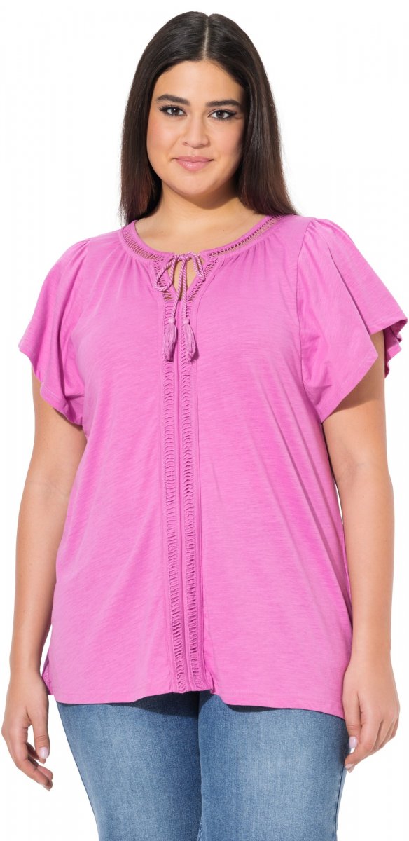 Ulla Popken Wing Sleeve V-Neck Tee Cool Pink