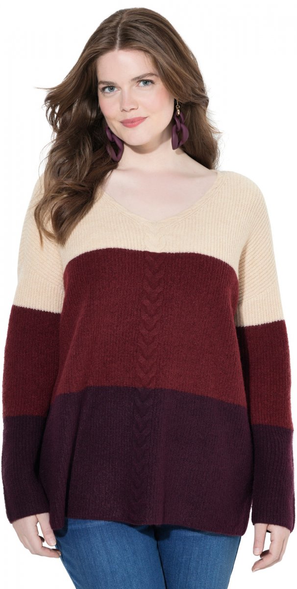 Suuruse juhend - Ulla Popken Cable Knit Block Stripe V-Neck Sweater Dark Ruby