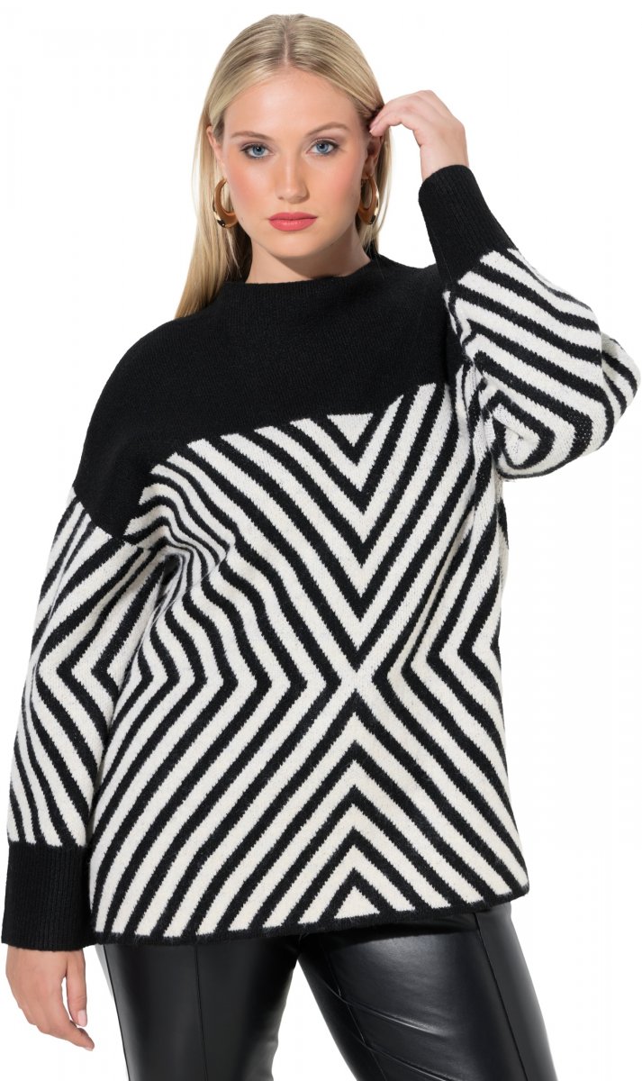 Suuruse juhend - Ulla Popken Graphic Stripe Long Sleeve Turtleneck Sweater Black