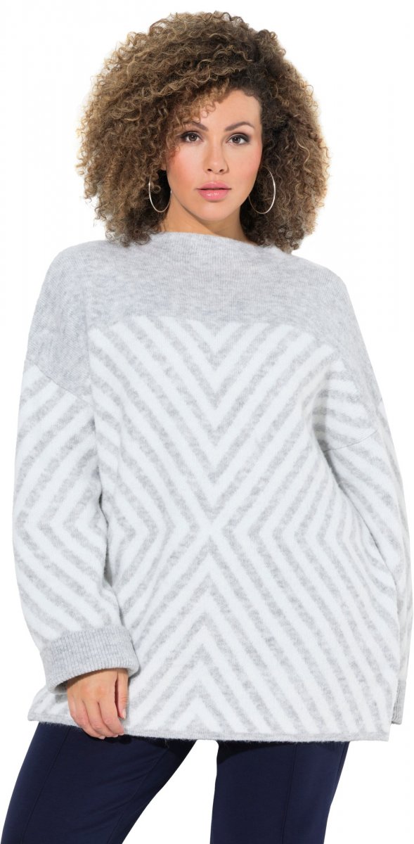 Suuruse juhend - Ulla Popken Graphic Stripe Long Sleeve Turtleneck Sweater Silver Melange