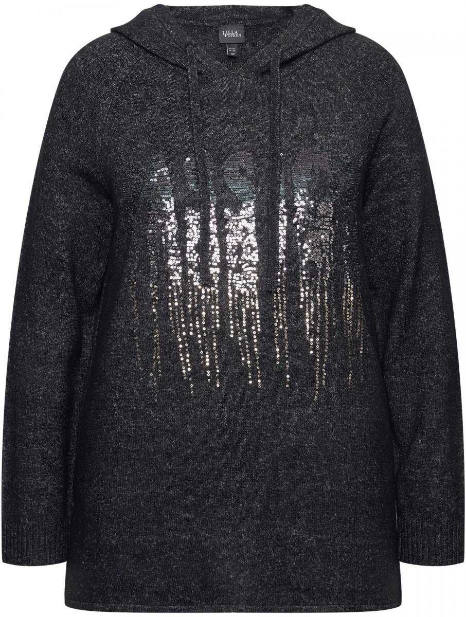 Ulla Popken Sequined Knit Long Sleeve Hoodie Black