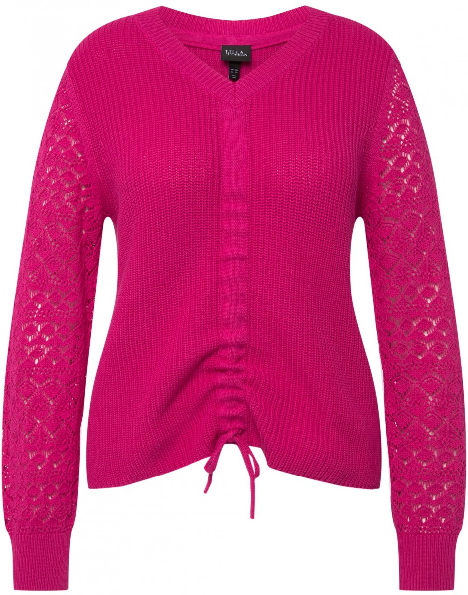 Suuruse juhend - Ulla Popken Shaker Stitch Cropped Gathered Sweater Fuchsia Pink