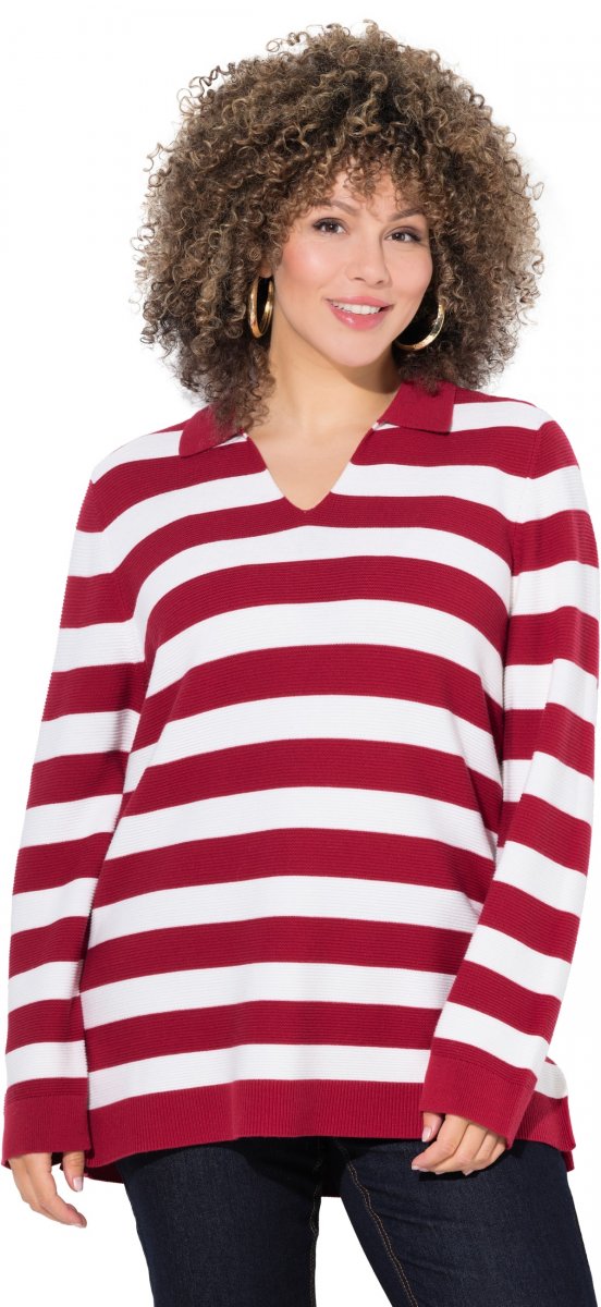 Suuruse juhend - Ulla Popken Striped Polo Collar Long Sleeve Sweater Ruby Red