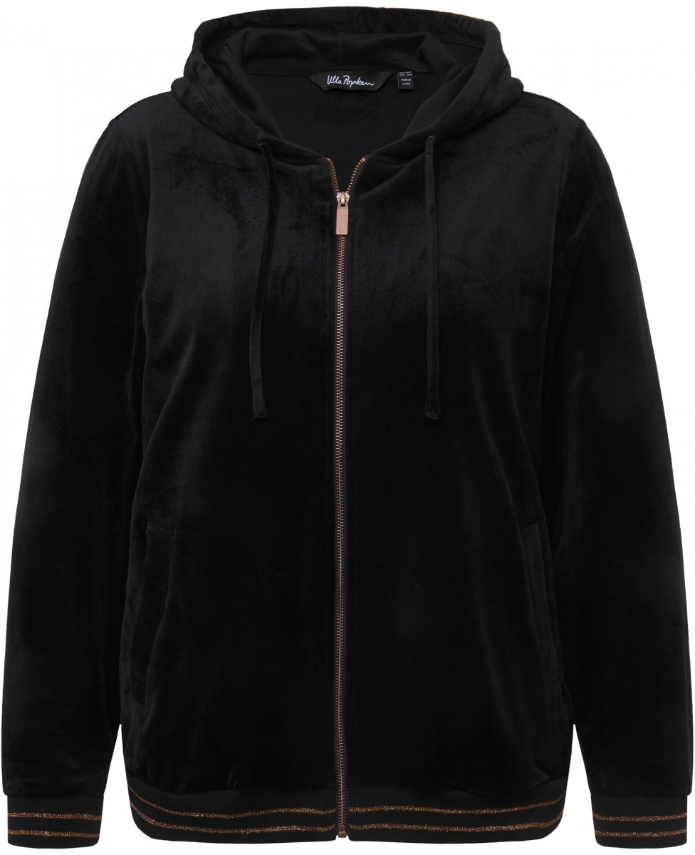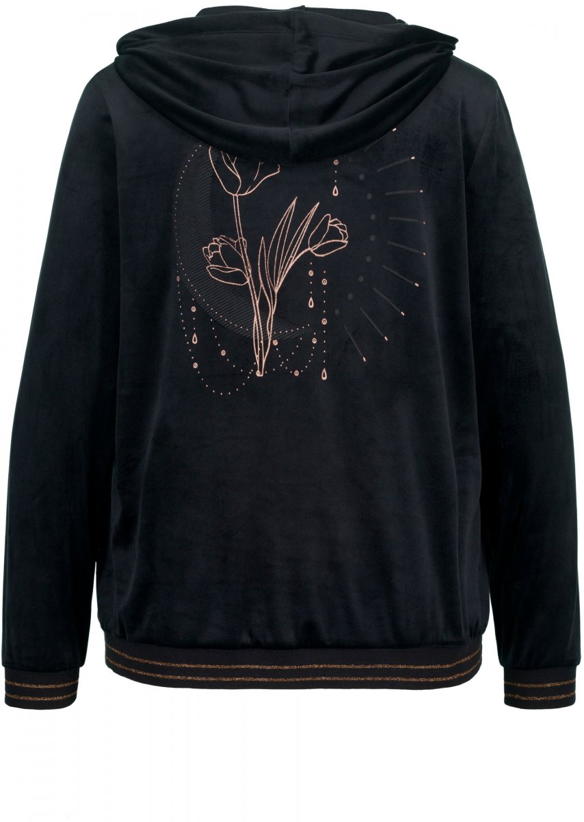 Ulla Popken Tulip Line Print Velour Zip Hoodie Black
