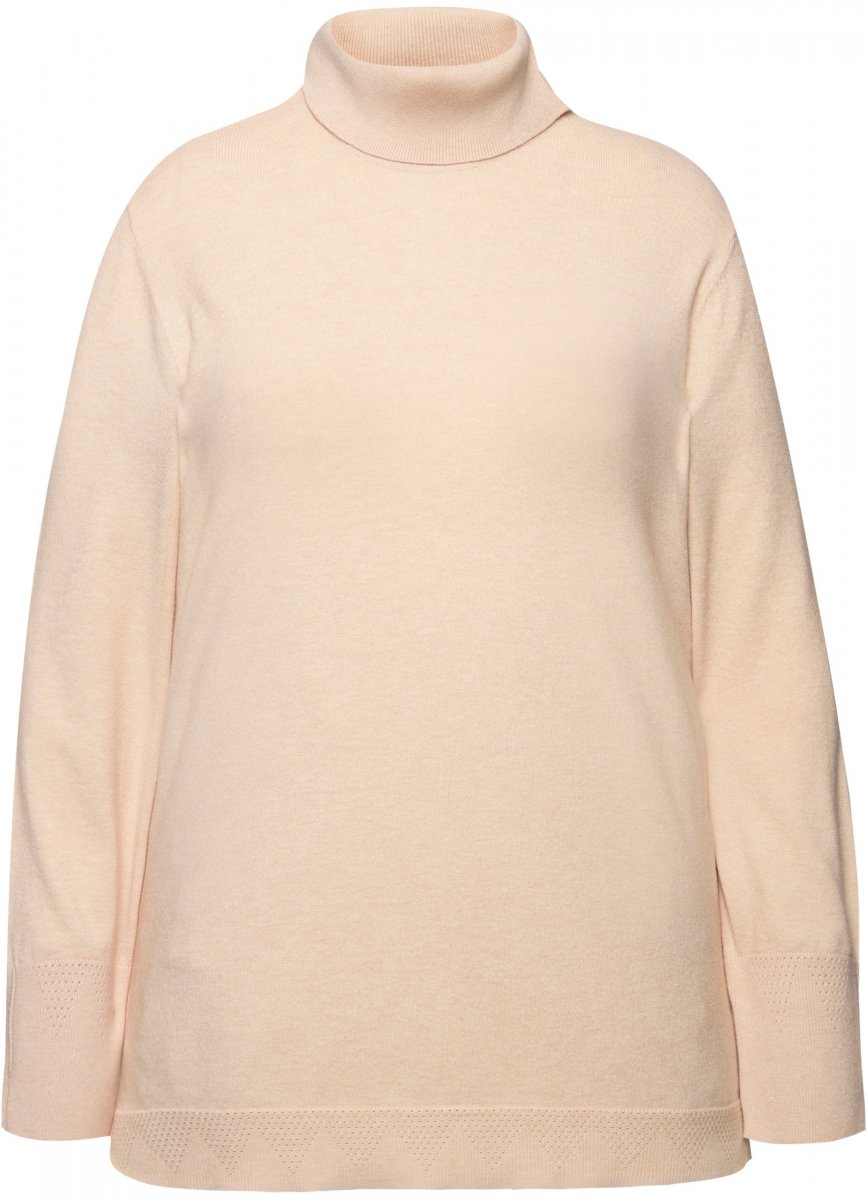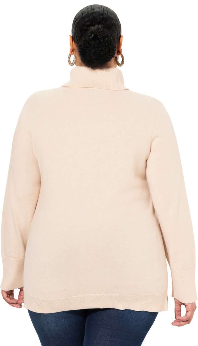 Ulla Popken Turtleneck Ribbed Trim Long Sleeve Sweater Nature Melange