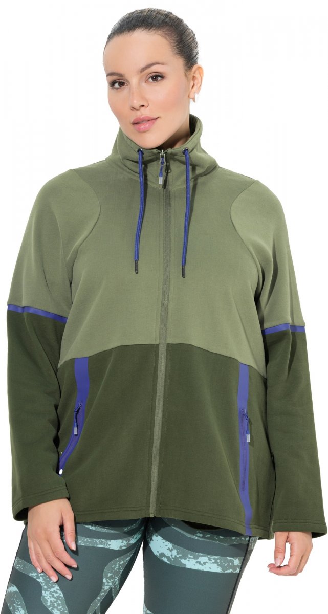 Ulla Popken Two-Tone ZIp Front Pocket Sweatshirt Olive Green