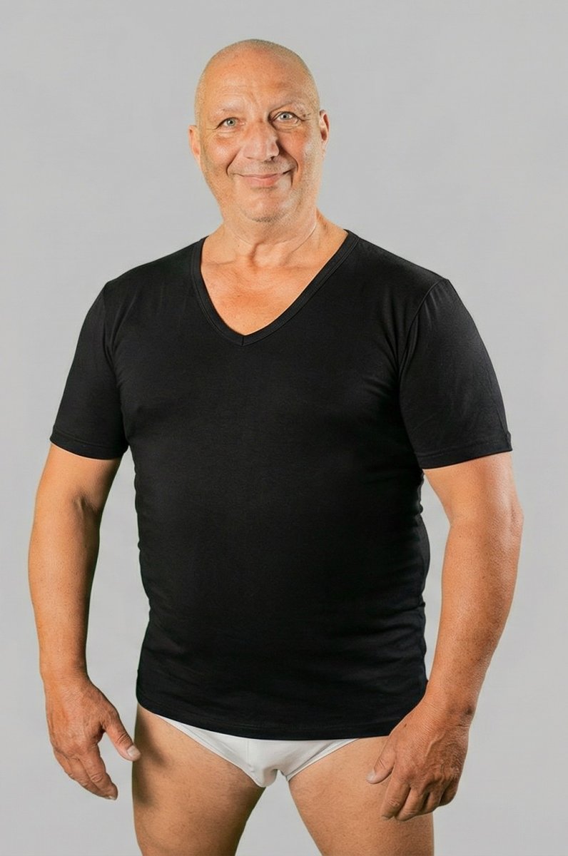 Suuruse juhend - 20 Nodi Short Sleeve V-Neck in Combed Cotton Jersey Black