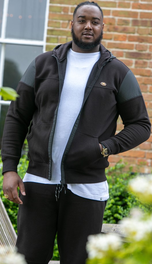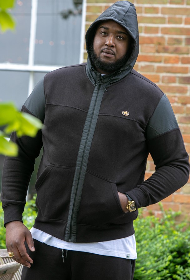 Suuruse juhend - D555 DEAN Couture Zip Through Hoody With Woven Contrast Fabric Trim Black