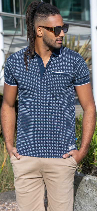Suuruse juhend - D555 Coventry AOP Polo Shirt Jacquard Collar & Ribbed Cuffs Navy