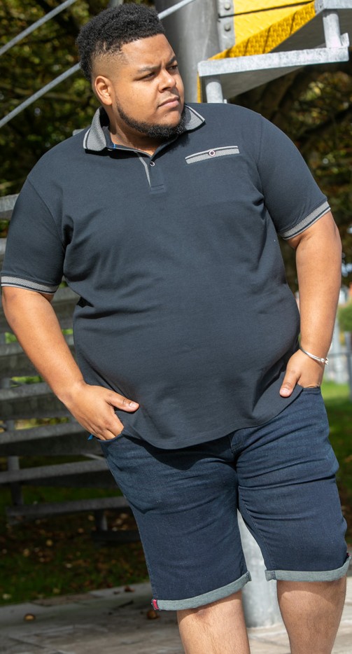 Suuruse juhend - D555 Ilkeston Jacquard Collar & Cuff Short Sleeve Pique Polo Navy